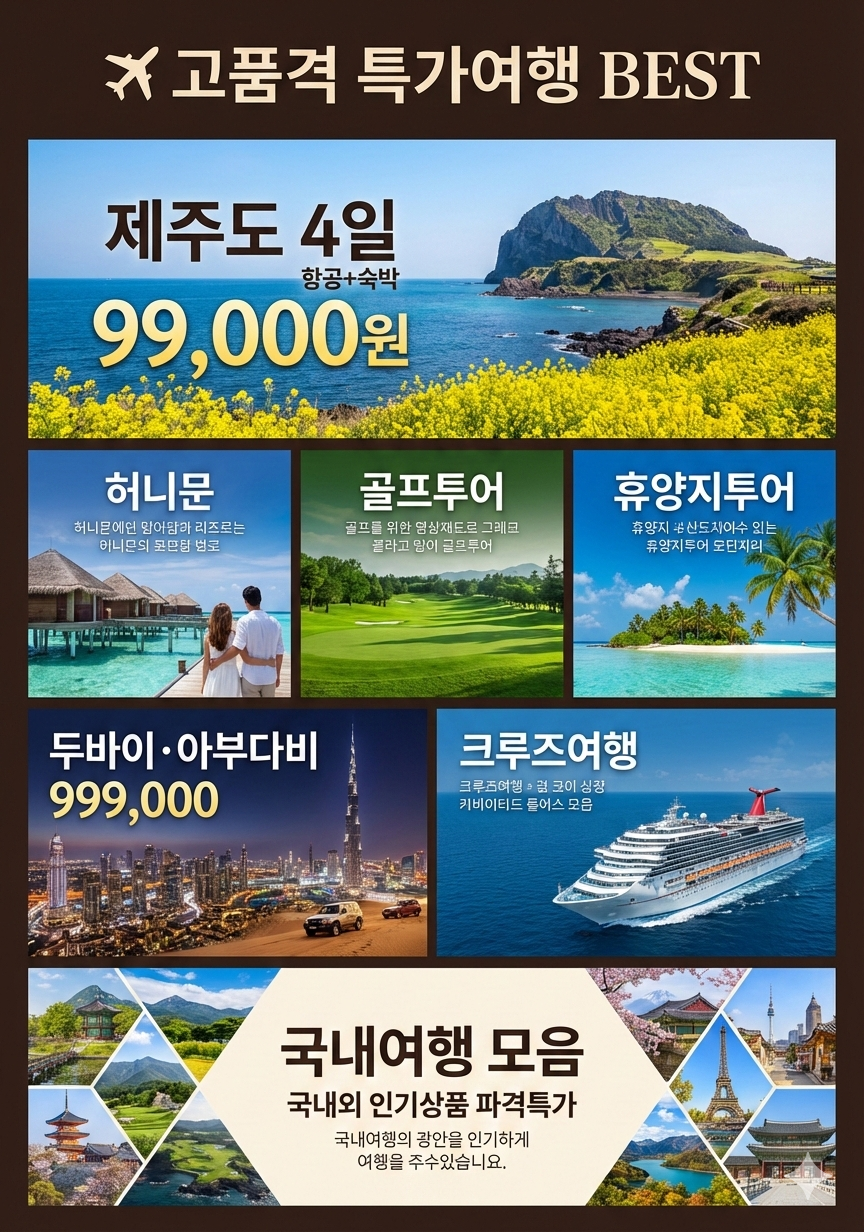 [전국 출발] 제주도 초초특가 3박 4일 즐겁게 제주도 생활을 느껴보시면 어떨까요? 99,000원 상품
