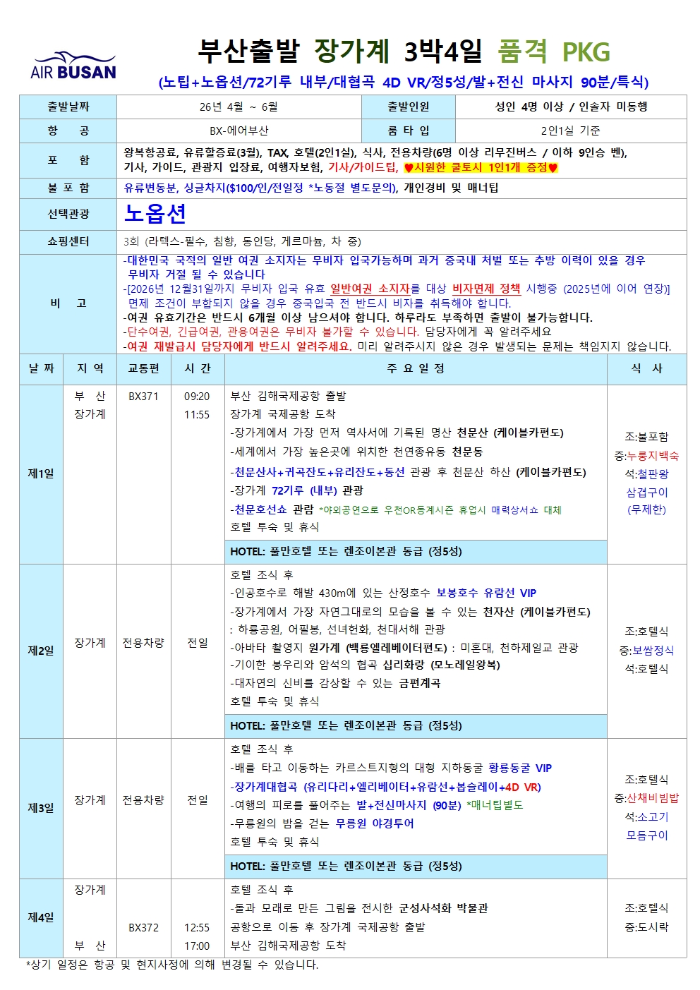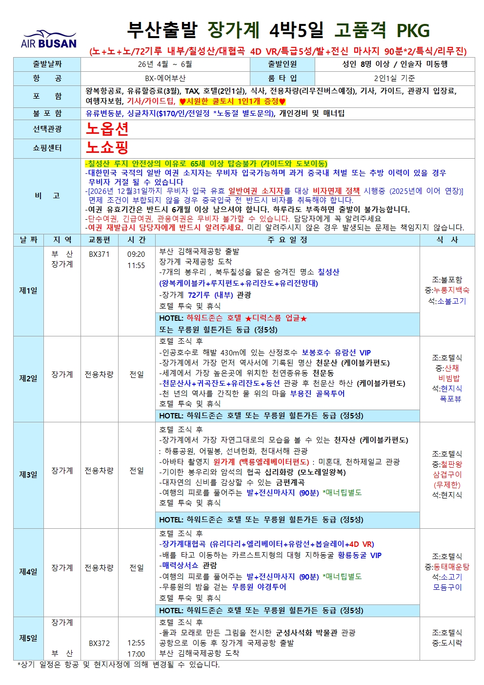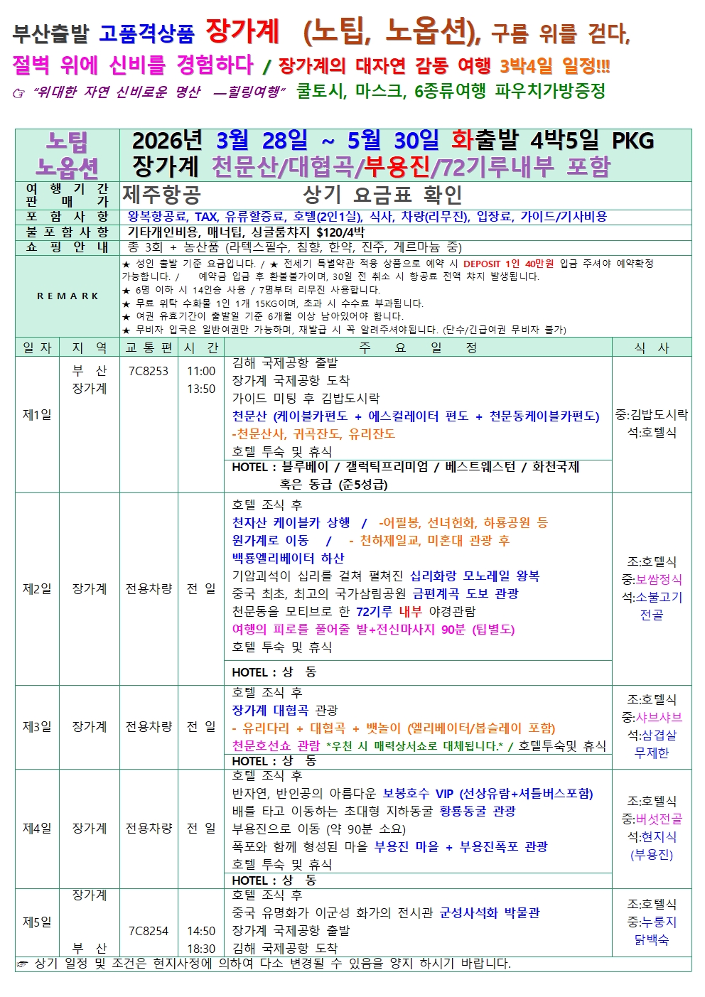 [부산출발] 장가계 대자연의 감동 위대한 절경 모아모아! 4일.5일