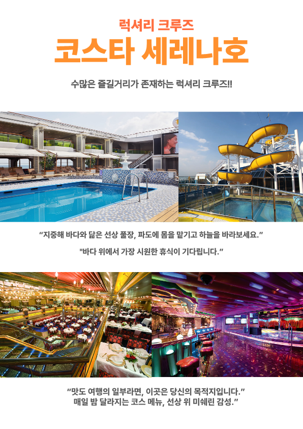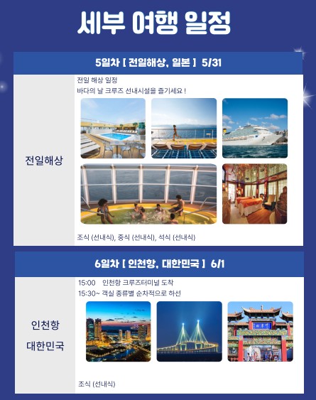 선내 이벤트 및 부대시설 이용 (일부 유료시설제외 : 면세점, 카지노, 스파 등)